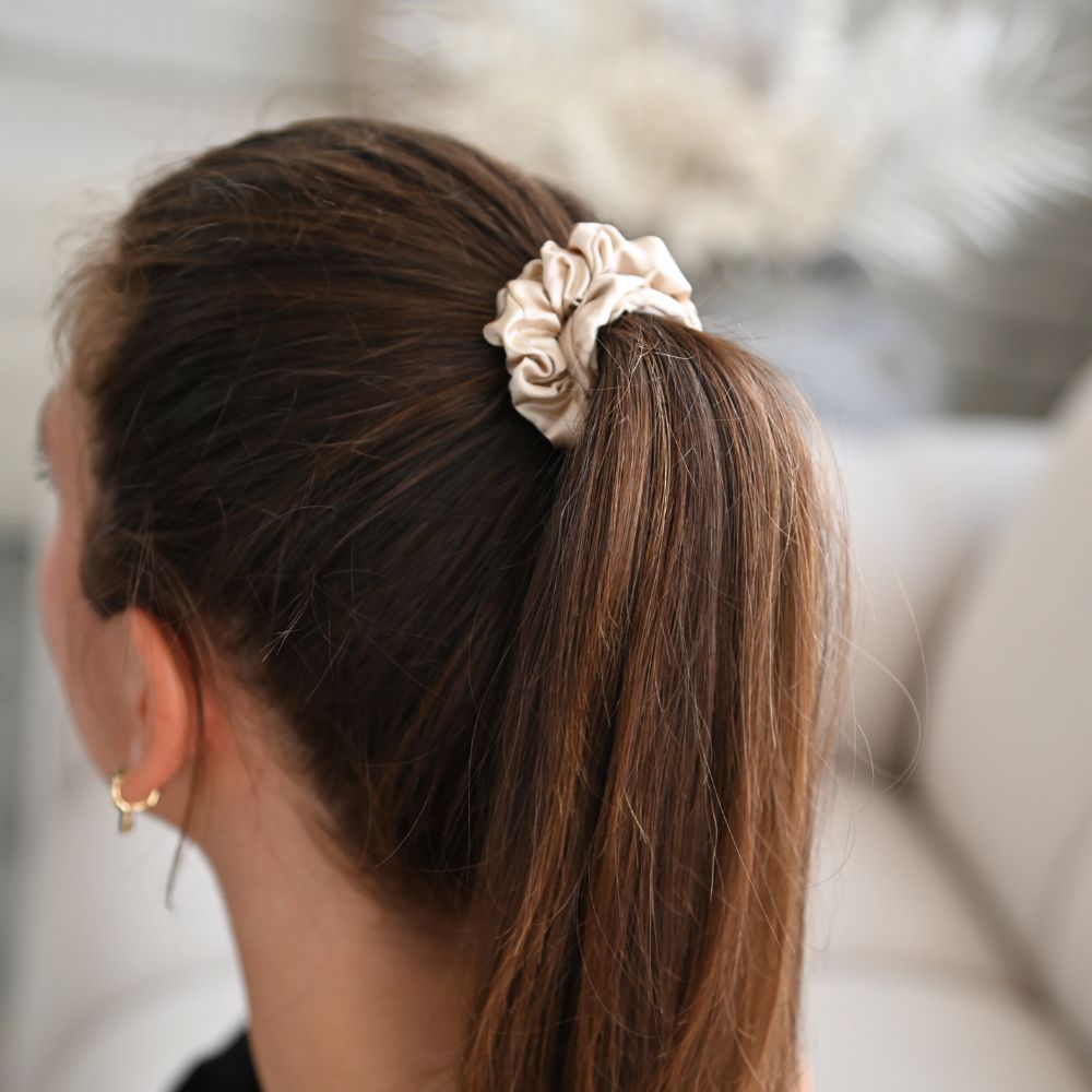 Hodvábna gumička do vlasov je navrhnutá tak, aby zabránila ťahaniu vlasov a nepohodliu pri nosení konských chvostov a iných účesov. Hodváb je hypoalergénny, takže je vhodný aj pre citlivú pokožku hlavy. Noste gumičku do vlasov, ktorá sa stará o vaše vlasy a zároveň dopĺňa váš štýl.
